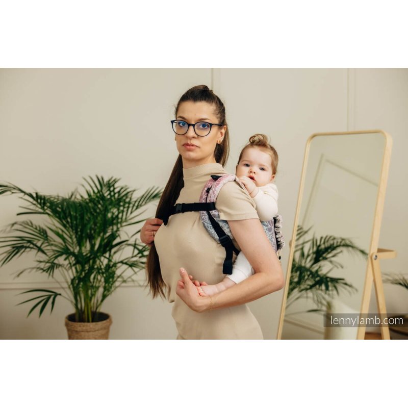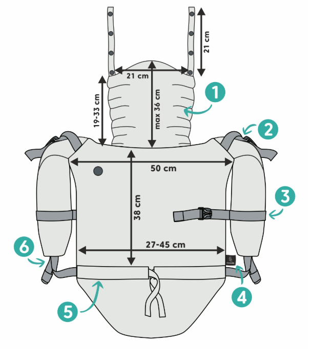 Snadno nastavitelná šířka (a u velikosti Preschool i výška) panelu – nosítko se přizpůsobí růstu dítěte.