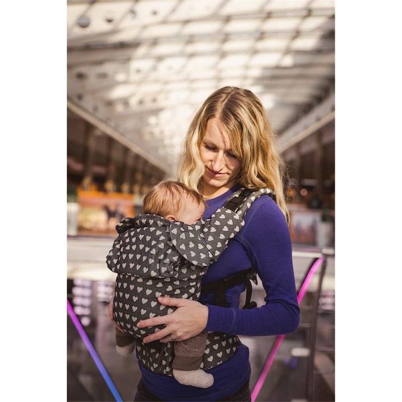 Comfortable carrier which is fastened by buckles but still it will adapt to you easily - as a wrap.